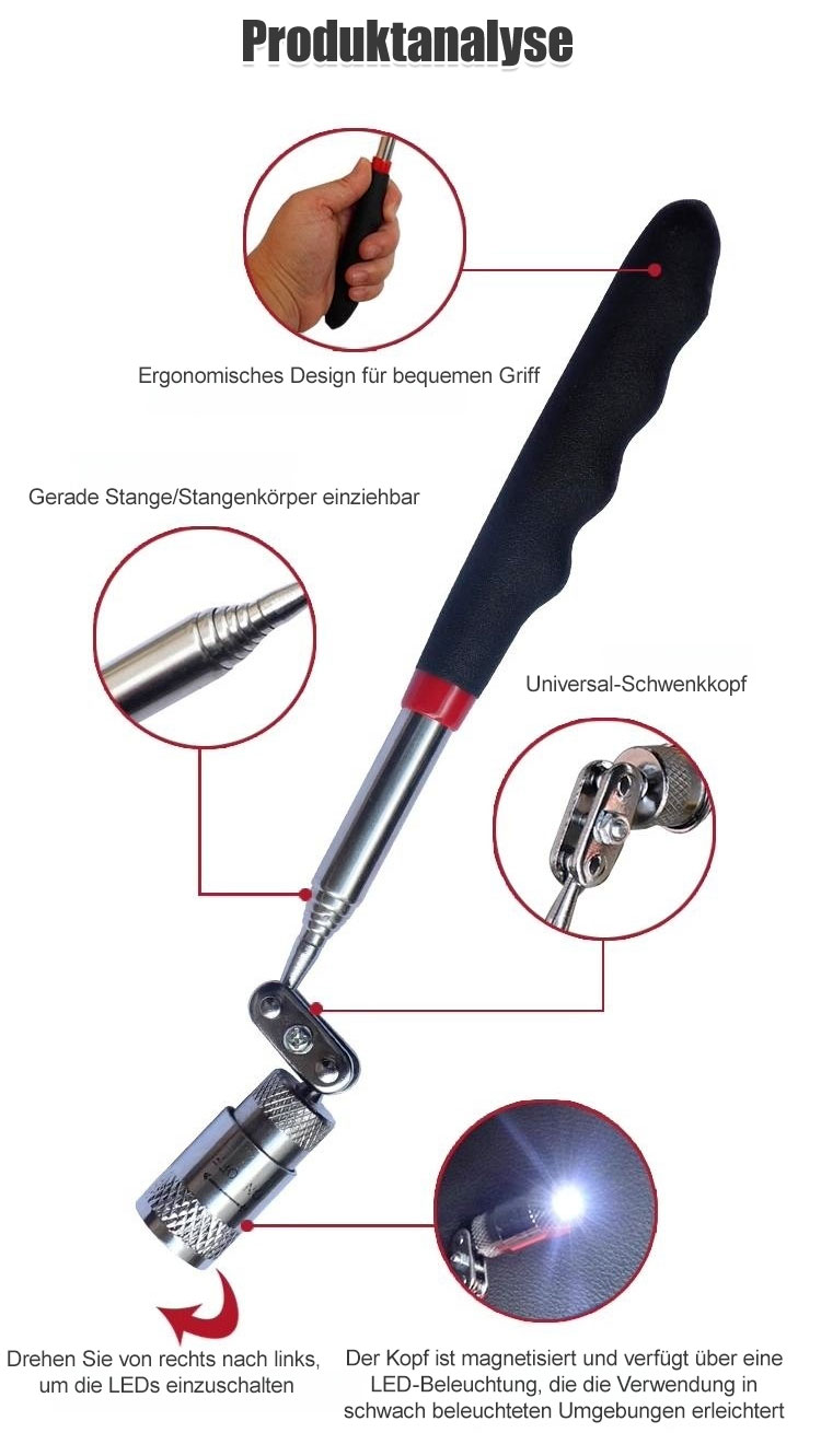Universeller Kopf teleskopischer Pickup Magnet mit LED Licht